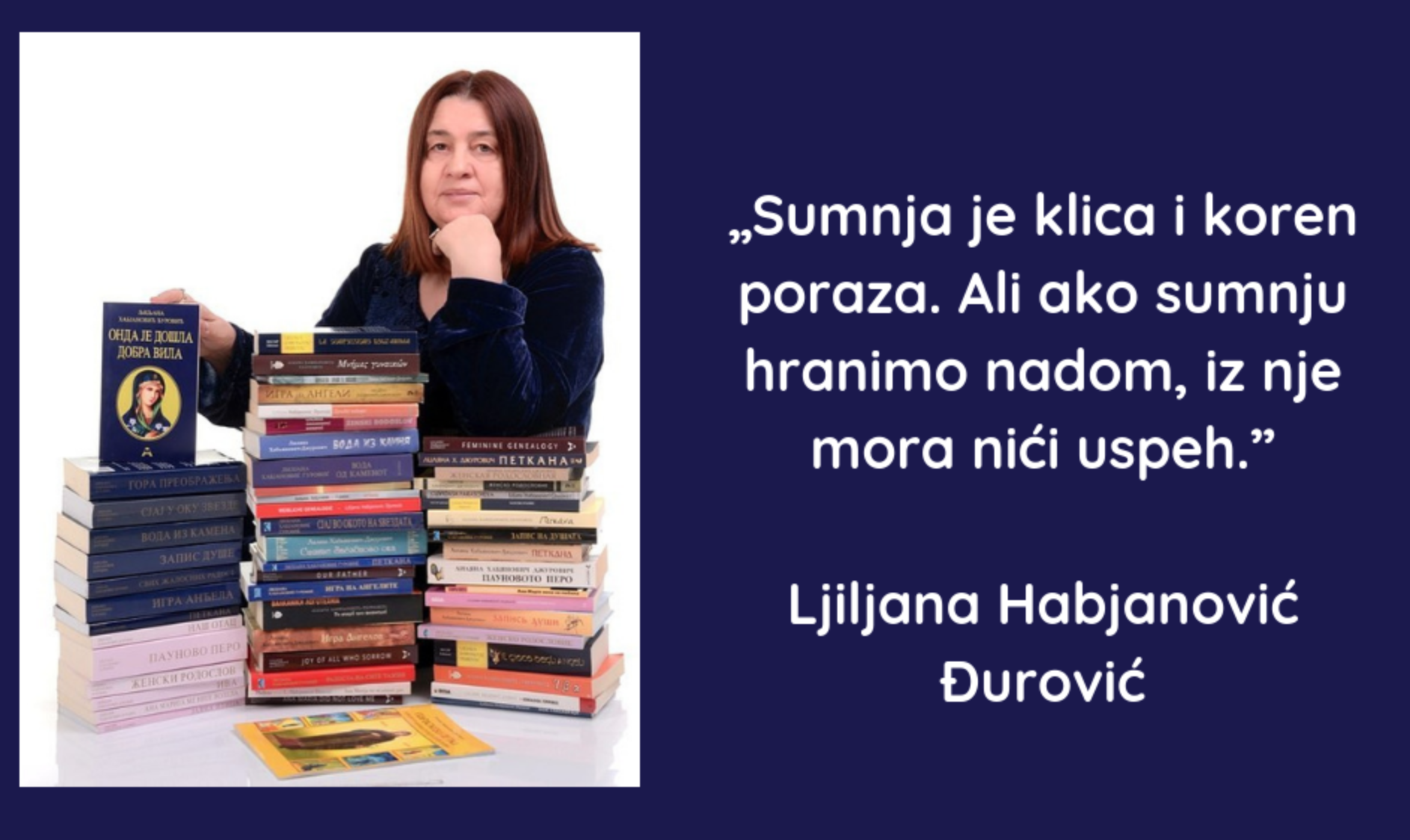 - Ne! To nikako! Šta ćete reći ako vam uđe bakica i traži „Laž i istina u vrtlogu života“ od Jelene Baćić Alimpić, ili duhovnu zbirku duhovne poetsko lirske produhovljene proze od Ljiljane Habjanović Đurović „I Bogoordica Marija Magdalena je kao i ja razmišljala šta bi kuvala danas“